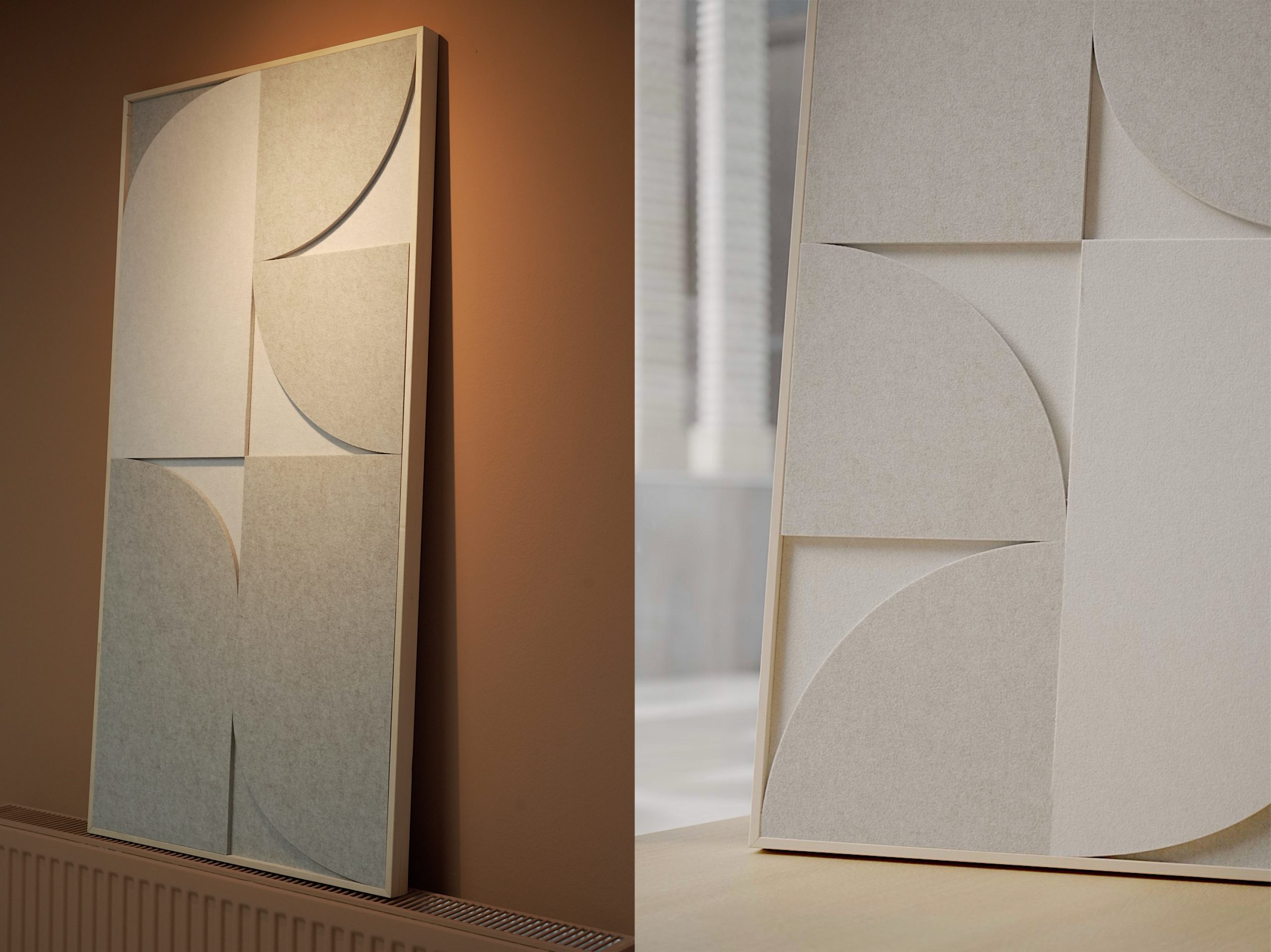 Made from layered PET felt, each artwork has a tactile, sculptural presence. Our acoustic artworks absorb sound, enhancing the atmosphere and improving any space's acoustics.