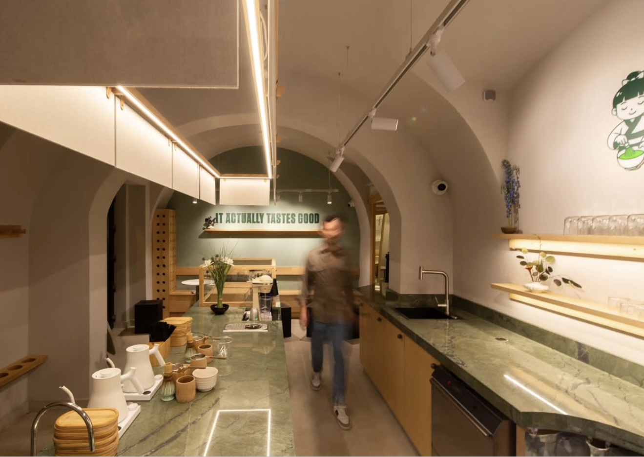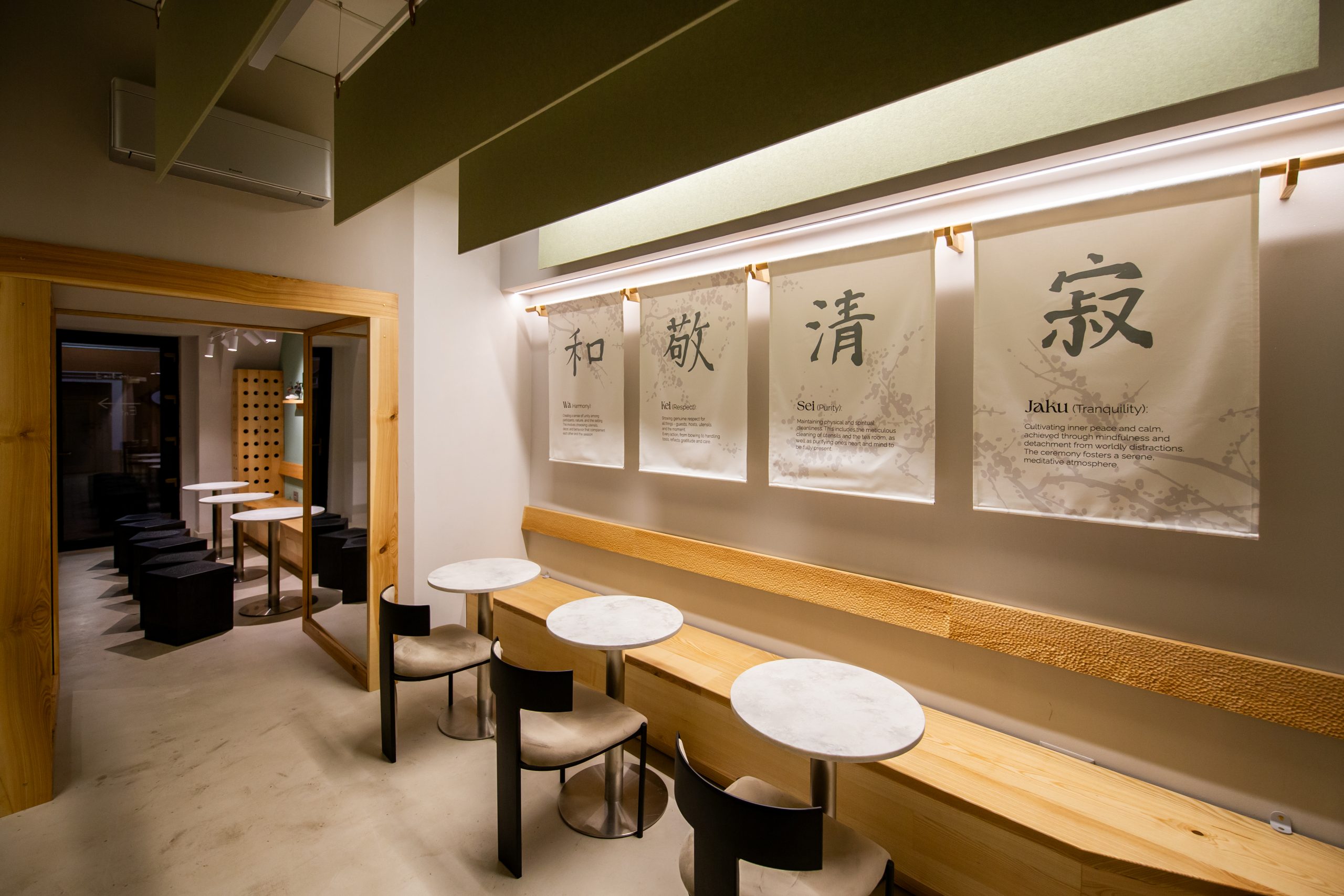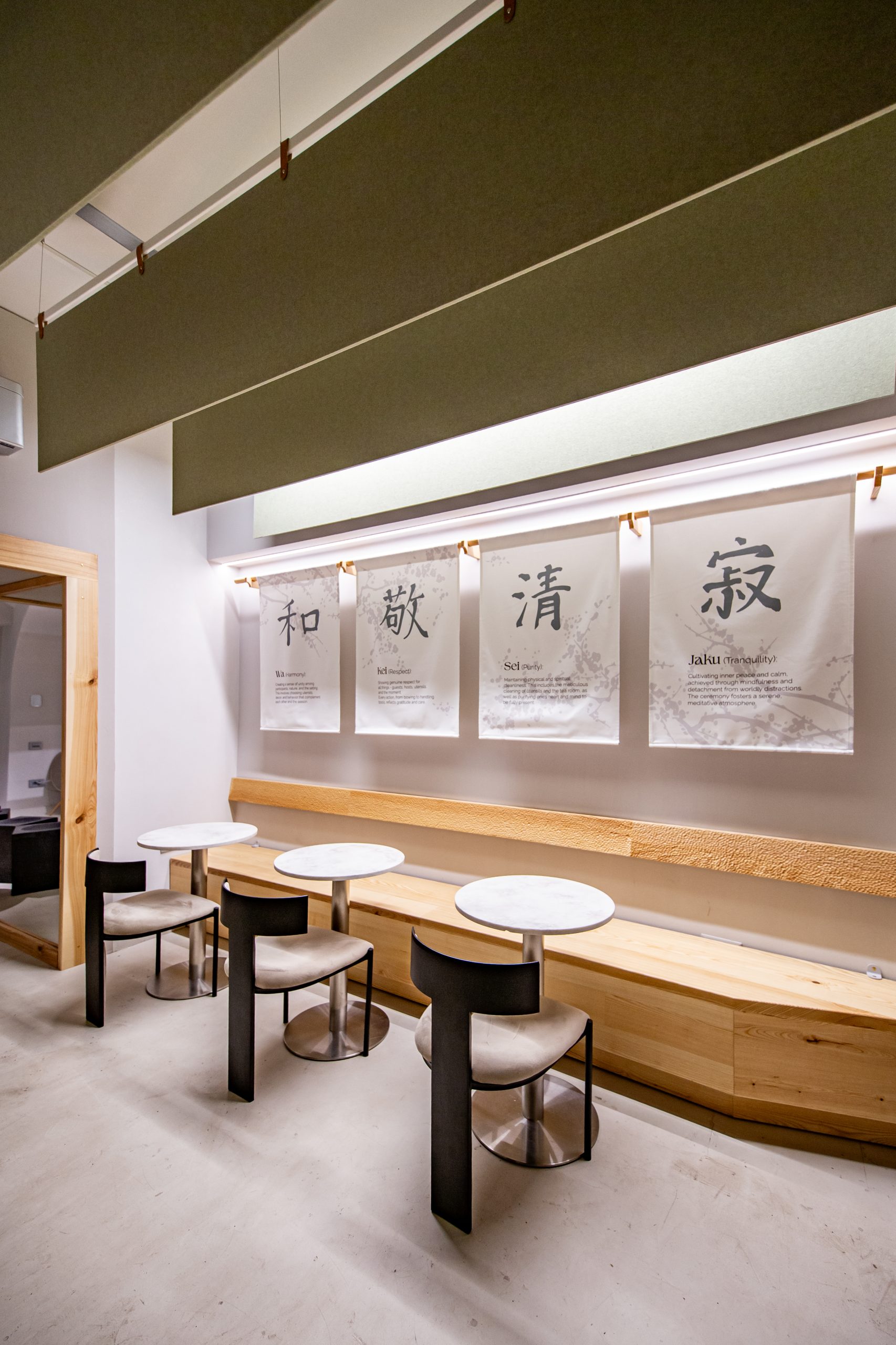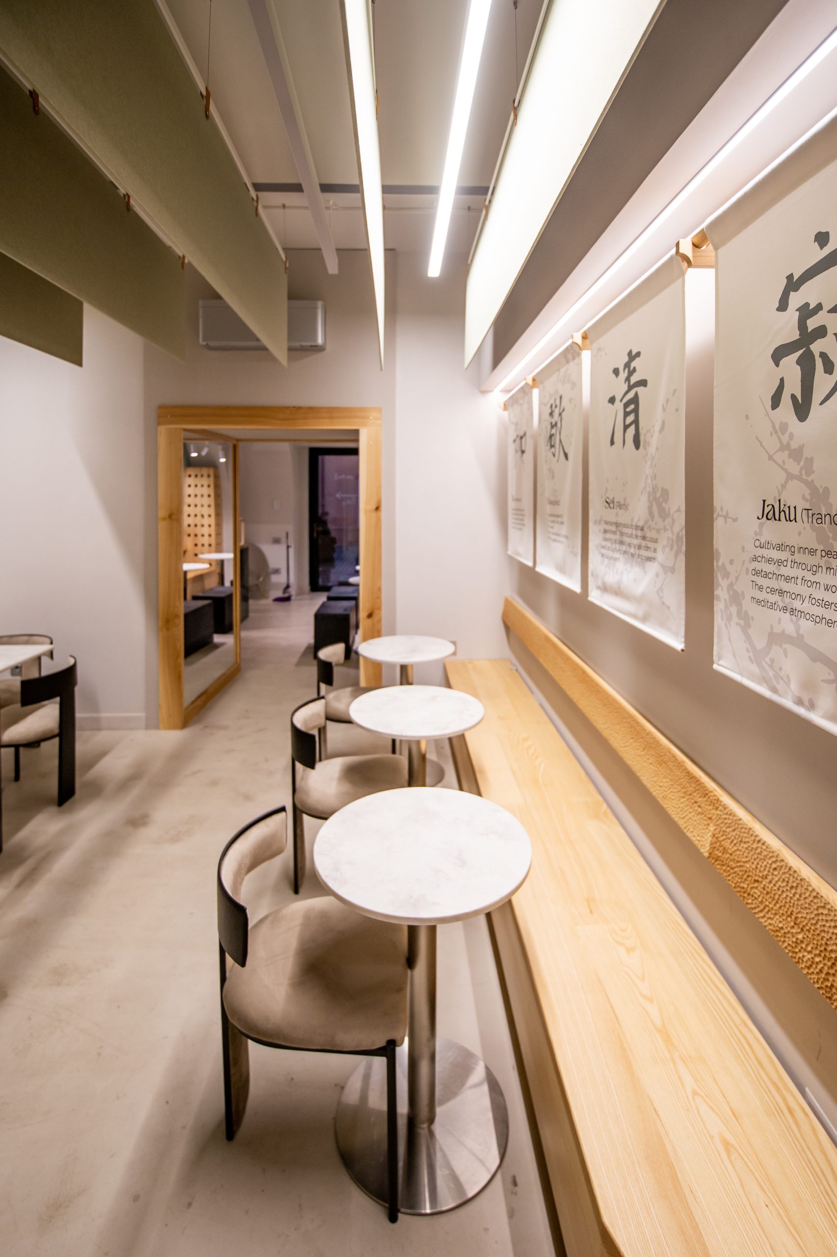 We implemented an acosutic felt ceiling above the bar, designed to absorb sound and create a subtle spatial distinction, contributing to a quieter, more balanced and welcoming atmosphere suitable for a cafe environment.
