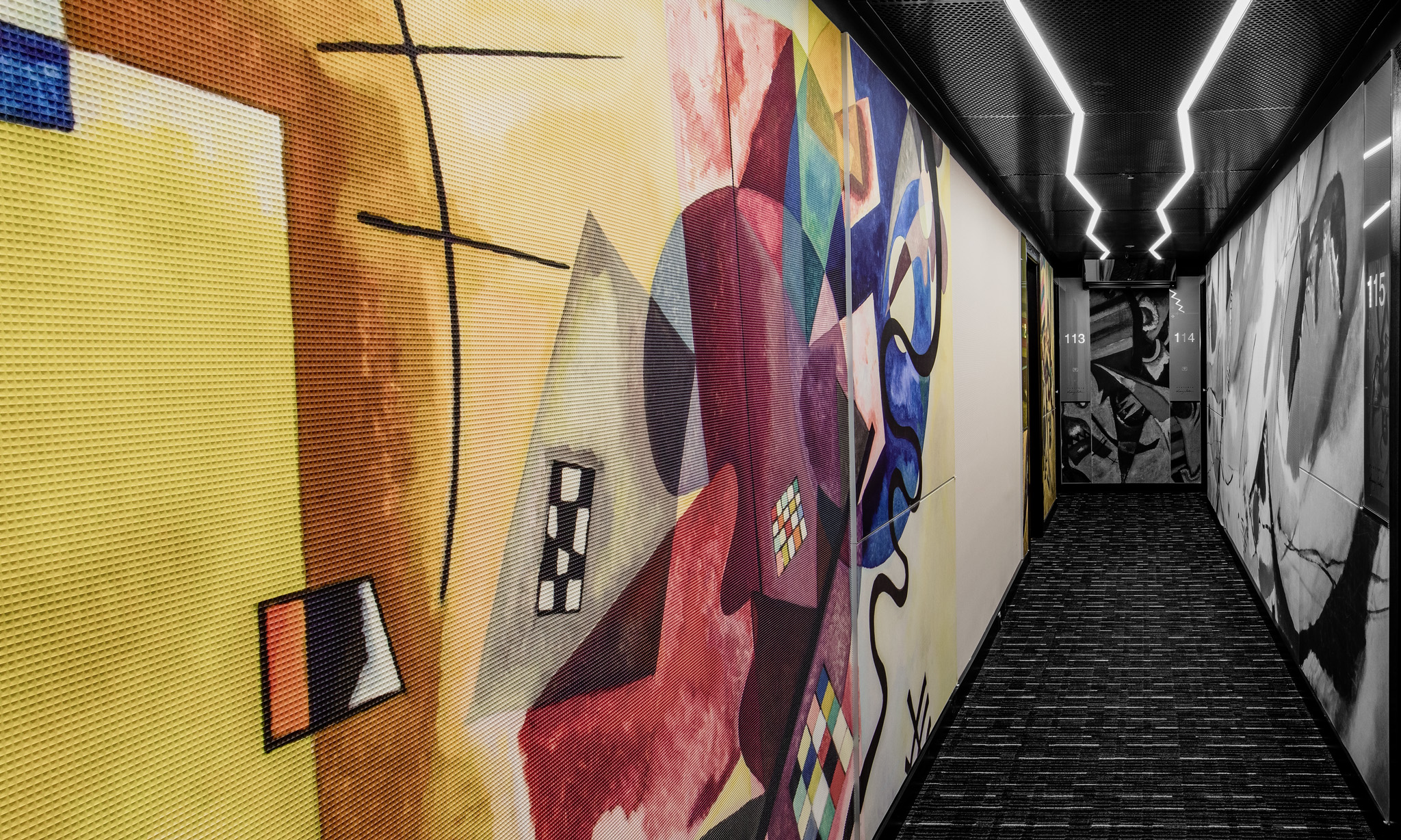For Hotel Platinia, we implemented a seamless printed textile acoustic wall solution across more than 2,000 sqm. The integration ensures optimal acoustic comfort while blending naturally with the interior design, creating a comfortable and pleasant atmosphere for every guest.